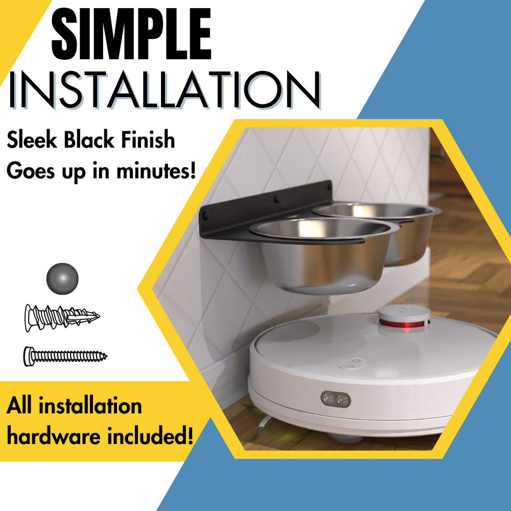 - Easy Installation Process: Comes complete with all necessary hardware and clear instructions, allowing for a straightforward setup on any wall in your home. Food and water bowls are included!