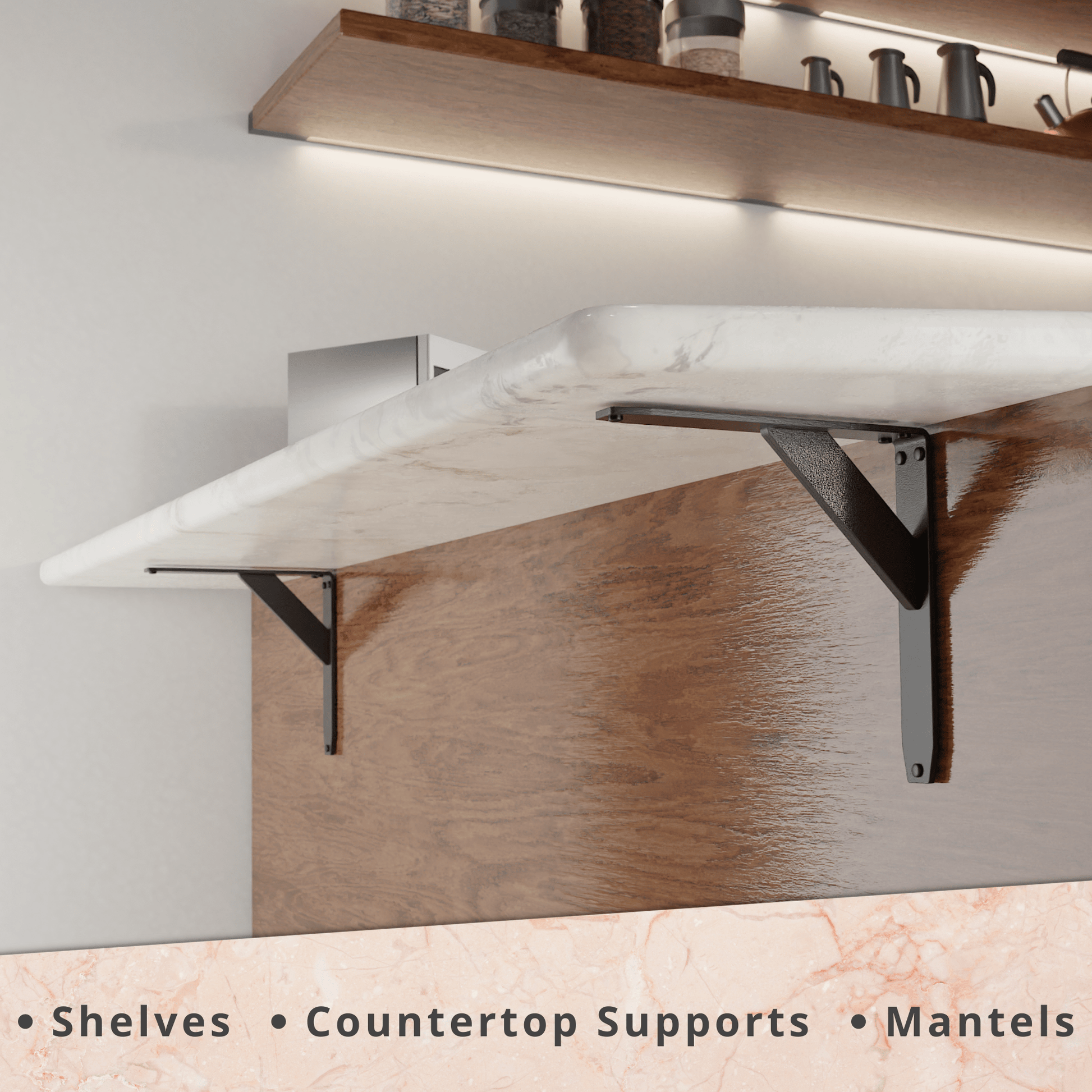 VIRTUALLY INVISIBLE; Our Jetstream Low Profile brackets are non-intrusive, leaving an open space for chairs and legs. No corbels are needed, which means no more knee-knocking when sitting at your countertop!