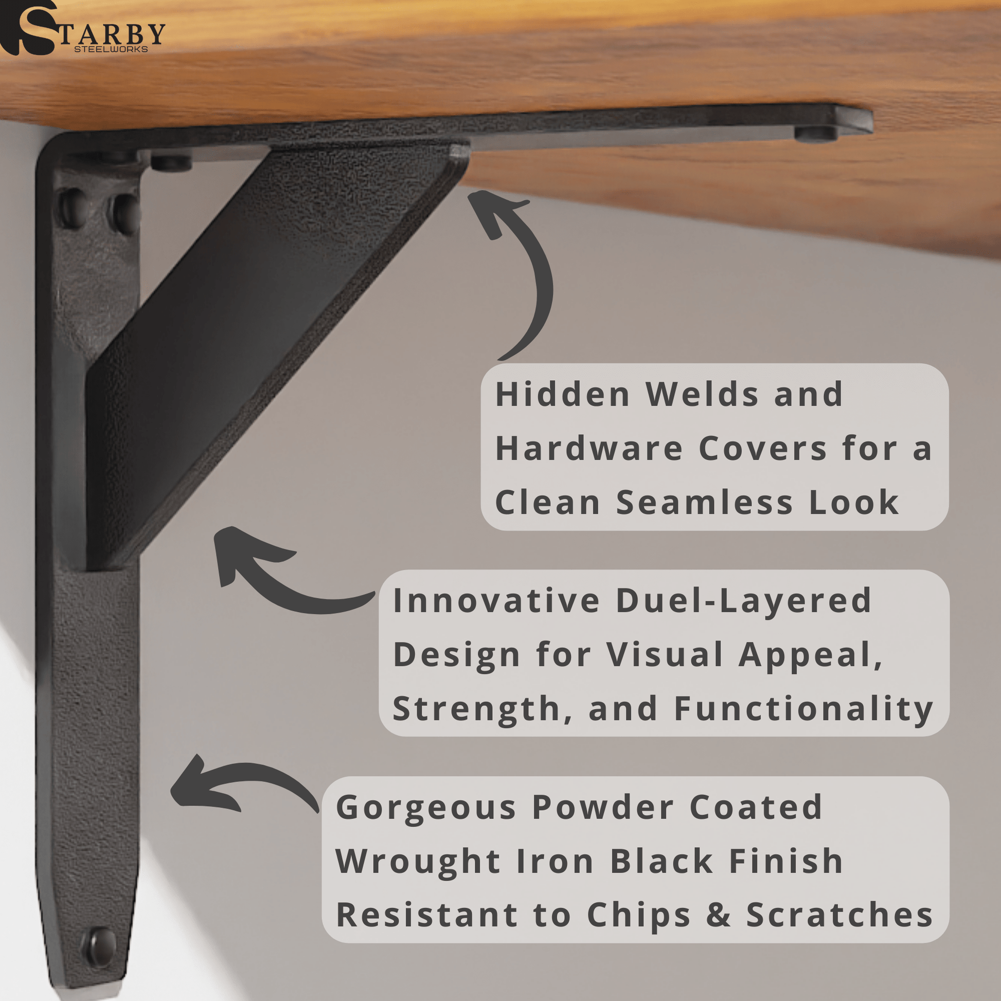 100% SATISFACTION GUARANTEE; If you don’t love our Jetstream low profile brackets, simply send them back or reach out to us and we will do whatever it takes to make things right; At STARBY Steelworks, we pride ourselves on excellent customer service and outstanding quality. Our products come with a Lifetime Warranty, we stand behind our products and want to make sure you are provided with the best countertop supports on the market. with American Steel / Lifetime Warranty