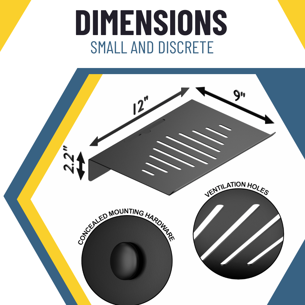 - KEEP YOUR GEAR COOL - Near excessive airflow venting on the bottom of the Koova Router Shelf provides more than enough airflow for even the most demanding equipment.