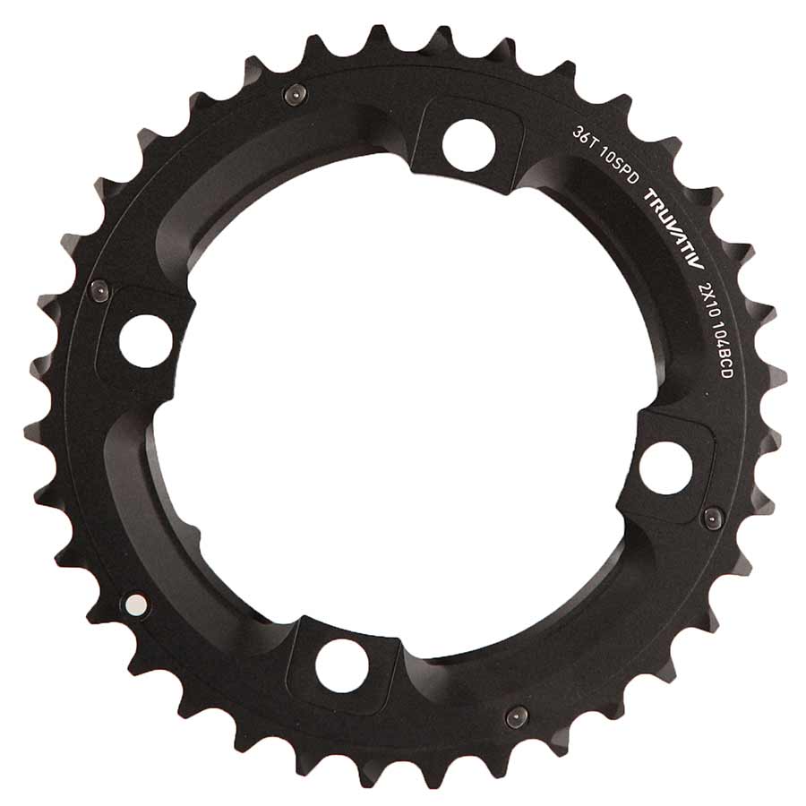 - SRAM, 36T, 10 sp, BCD 104mm, 4-Bolt, Pour bashguard, Middle Chainring, For NO-PIN, Aluminum, Black, 11.6215.188.410