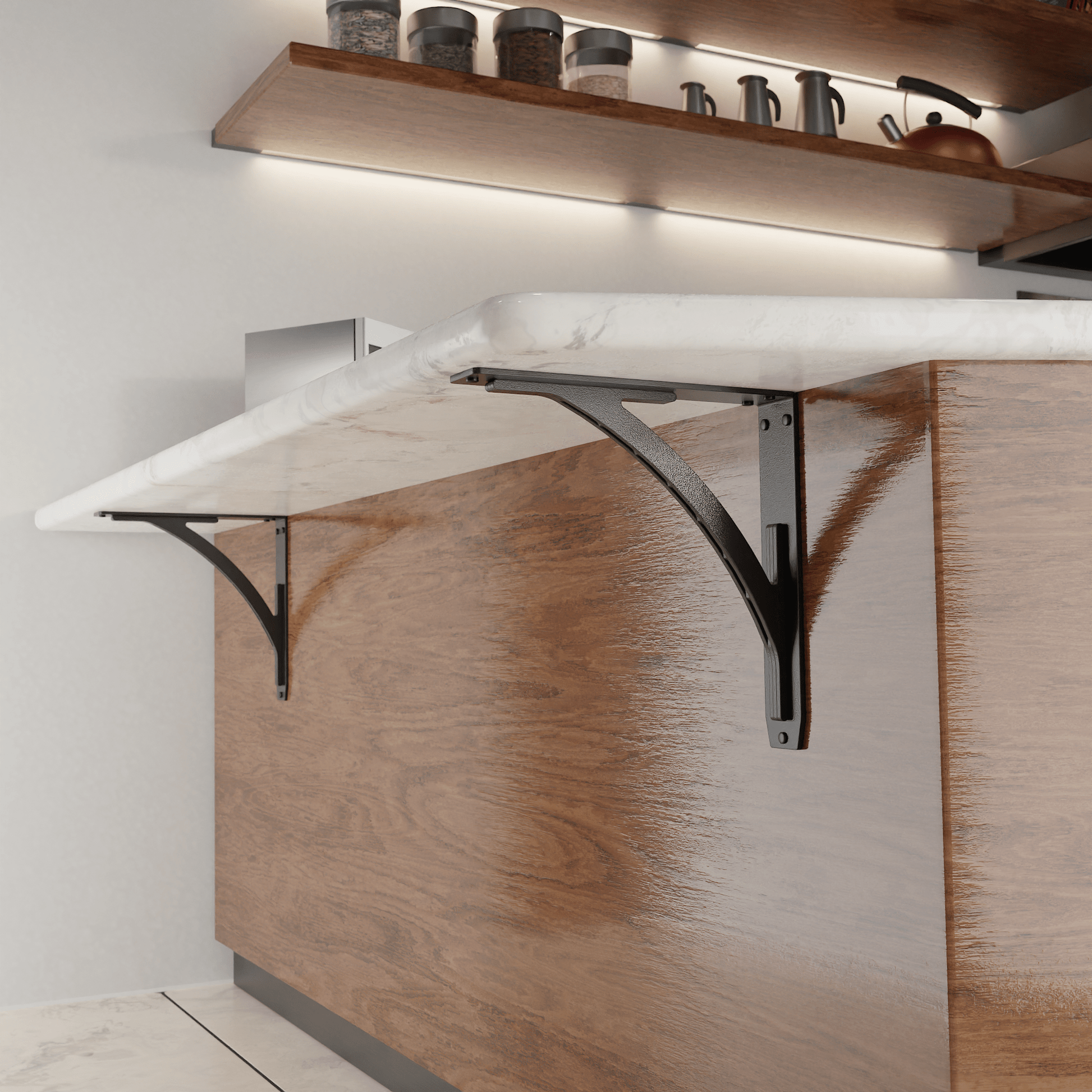 - STACKED STEEL DESIGN PROVIDES VISUAL APPEAL - Unique to our brand, these stacked steel heavy duty countertop / mantel brackets create a depth in the design that is beautiful and strong. Each pair can hold over 500 pounds when properly installed.