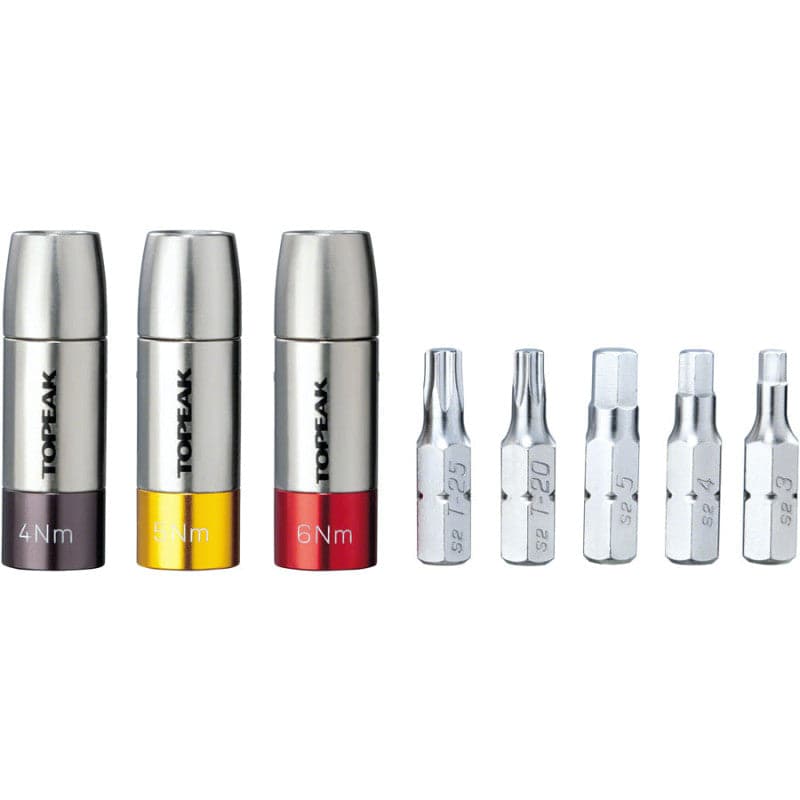 This tool set consists of 4 / 5 / 6Nm TorqSockets that will work with any mini tool containing a 5 mm Allen wrench (or single 5 mm Allen wrench). Its advanced torque limit release design consistently applies precise torque values on component bolts for safety and prevents damage to expensive carbon parts. A carry case neatly stores three preset TorqSockets (4 / 5 / 6Nm) and the 5 most popular tool bits (3 / 4 / 5 mm hex & T20 / T25 Torx).